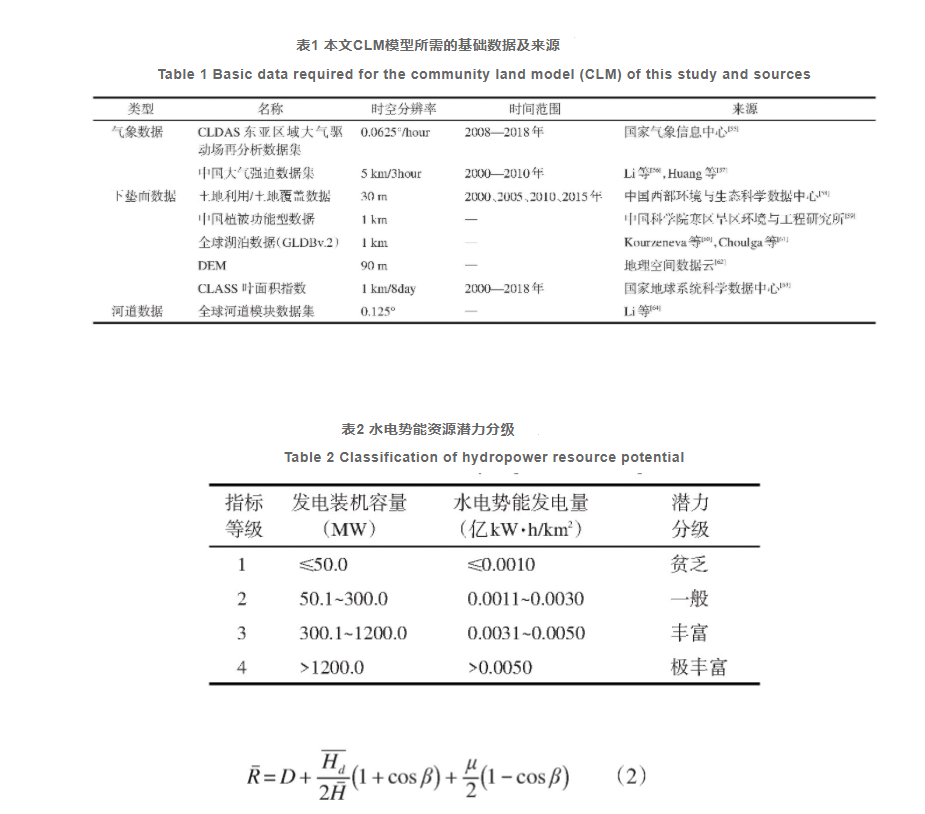 本文驅動CLM模型所用數(shù)據(jù)集如表1所示,水電勢能潛力評估的空間分辨率為1 km,時間為2000—2018年。