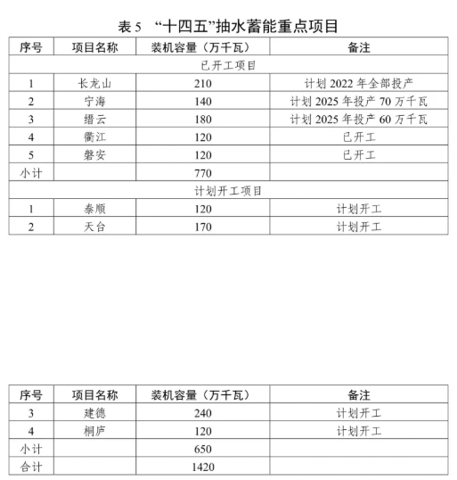 有序發(fā)展抽水蓄能電站。積極推進長龍山、寧海、縉云、衢江、磐安等抽水蓄能開工項目的建設,穩(wěn)妥開展泰順、天臺等抽水蓄能電站項目前期工作,適時啟動建德、桐廬站點的前期工作。結(jié)合現(xiàn)有站點,合理規(guī)劃布局,積極推動新一輪抽水蓄能電站選點工作。加強抽水蓄能電站建設管理體制、電價機制等研究。"十四五"期間,全省抽水蓄能電站力爭新增裝機容量 340 萬千瓦,累計裝機容量達到798 萬千瓦。