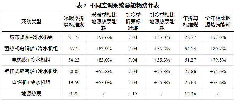 地大熱能通過(guò)多年的工程實(shí)踐和不斷的研究以及參考市面上的一些研究成果,從采用不同空調(diào)系統(tǒng)形式的采暖能耗及污染物的排放、系統(tǒng)總能耗及初投資等幾個(gè)方面討論地源熱泵系統(tǒng)的優(yōu)勢(shì),結(jié)論如下: