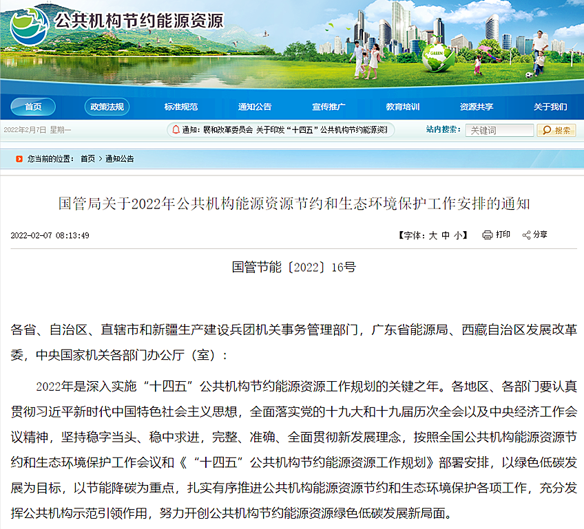 地大熱能清潔低碳能源網(wǎng)訊:國(guó)管局發(fā)布《關(guān)于2022年公共機(jī)構(gòu)能源資源節(jié)約生態(tài)環(huán)境保護(hù)工作安排的通知》。通知指出,全面落實(shí)節(jié)能降碳有關(guān)工作: