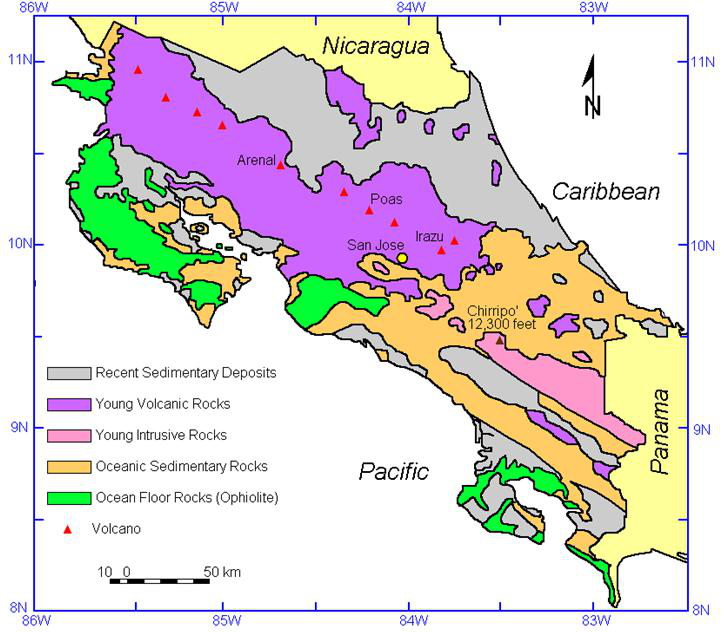 哥斯達(dá)黎加位于中美洲地峽,屬于北美洲,北緯10°,西經(jīng)84°。東臨加勒比海西靠北太平洋,有著1290千米有著1290千米的海岸線(東岸加勒比海212千米,西岸太平洋1016千米)。哥斯達(dá)黎加北部與尼加拉瓜接壤(邊境線長309千米),東南偏南與巴拿馬接壤(邊境線長639千米)。總共有51100平方公里,其中領(lǐng)土50660平方公里,領(lǐng)海440平方公里,比美國的西弗吉尼亞州稍小,相當(dāng)于愛爾蘭。森林覆蓋率為51%。哥斯達(dá)黎加的地形是:海岸邊是平原,而中部被崎嶇的高山所隔絕。該國宣布其專屬經(jīng)濟(jì)區(qū)為200海里,領(lǐng)海為12海里。氣候?qū)儆跓釒Ш蛠啛釒В€有一部分是新熱帶。