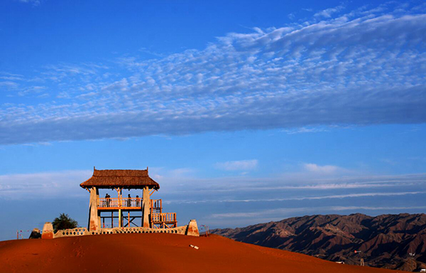 特殊的地理環(huán)境孕育了豐富的旅游資源,在這里,可以看到極具歷史積淀意義的4公里長的明代古長城遺址的宏偉景觀;可以站在湖畔觀賞著多達(dá)15種的沙漠生態(tài)魚和136種鳥類,其中黑鸛、大天鵝、金雕分別屬于國家一、二級保護(hù)動物;可以在水上樂園與湖水親近;可以在遼闊的沙漠草原中縱情馳騁、在金沙島紫色的花海中徜徉;可以在永安寺里尋找片刻的寧靜,在五彩池畔與荷花仙子心靈神匯。騰格里湖沙漠濕地旅游區(qū)溫泉猶如沙漠里的藍(lán)色水晶,如詩如畫的旖旎風(fēng)光,看著格外悅目。