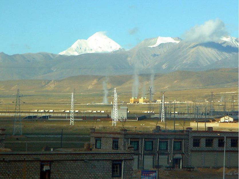羊八井,即羊八井鎮(zhèn),位于西藏拉薩市西北91.8公里的當(dāng)雄縣境內(nèi)。熱田地勢平坦,海拔4300米,南北兩側(cè)的山峰均在海拔5500~6000米以上,山峰發(fā)育著現(xiàn)代冰川,藏布曲河流經(jīng)熱田,河水溫度年平均為5℃,當(dāng)?shù)啬昶骄鶜鉁?.5℃,大氣壓力年平均為0.06兆。附近一帶經(jīng)濟(jì)以牧業(yè)為主,兼有少量農(nóng)業(yè)。青藏、中尼兩條公路干線分別從熱田的東部和北部通過,交通尚為方便。