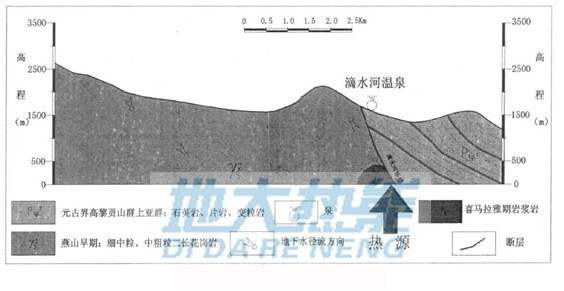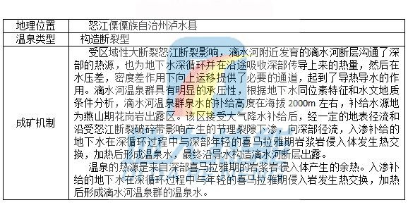 云南滴水河溫泉風景出露區(qū)地形地貌特征主要受滴水河河流侵蝕的影響,為河流侵蝕地貌類型,其出露位置主要受滴水河斷層控制。